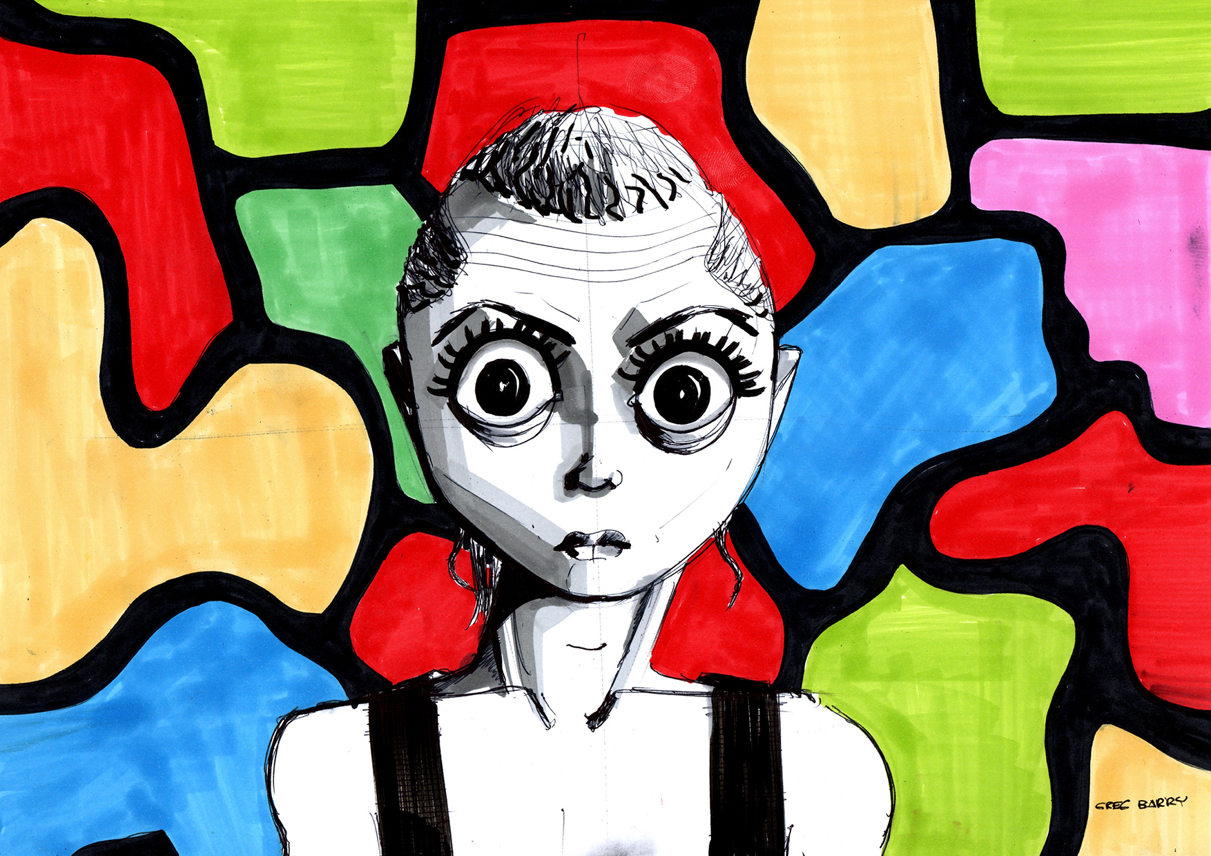 Dessin réalisé au stylo et feutres sur papier A4 Clairefontaine DCP 100gr.